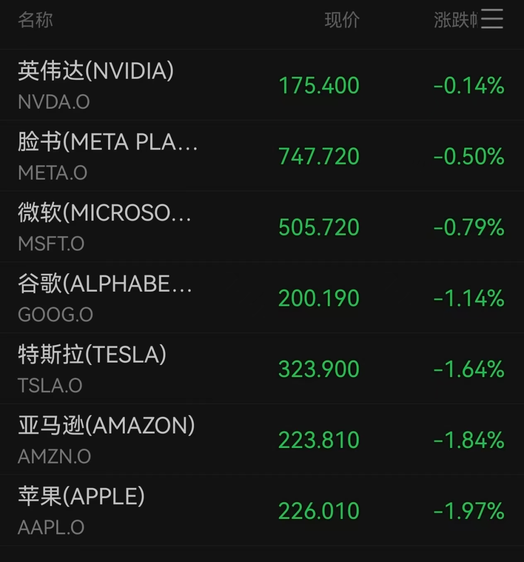 投资者接续抛售科技股,好意思股科技七巨头全线下落,英伟达盘中一度跌4%,英特尔收跌近7%,苹果、亚马逊跌近2%。