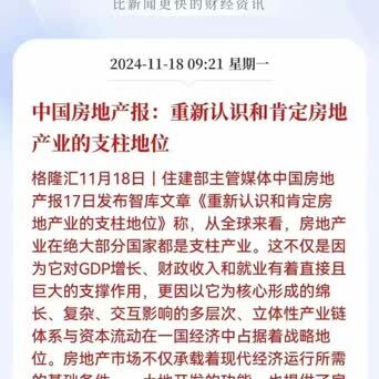【房地产行业维持地位被再次阐明!】字据住建部应用媒体《中国房地产报》昨日发文《重新意识和细则房地产的维持地位》,文中荒谬指出,要认清经济章程和经济地点,鼓舞房地产商场“止跌企稳”。