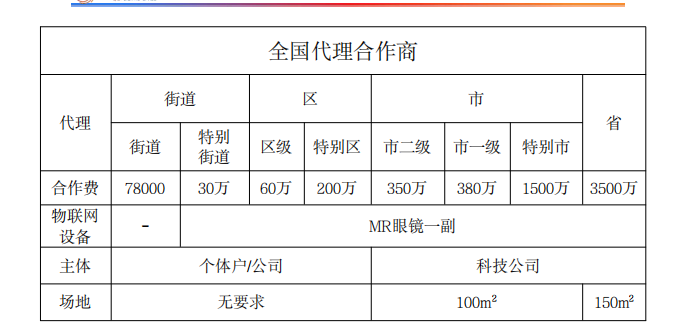 银柿财经发现,这些代理权的价钱并不低。逾越10万东说念主口的街说念级代理运营商要缴纳协作费7.8万元,极度街说念需缴纳协作用度30万元,省级、极度市的代理权分离为3500万元、1500万元,市一级、市二级、极度区/县级的代理权均超百万元。